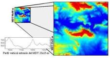 A partir de los datos del SRTM podemos obtener un MDT de cualquier parte del mundo con una resolución de 25 m. (escala aprox. 1: 100.000). Para ello se ha desarrollado una metodología basada en el exclusivo método de interpolación desarrollado por Dielmo 3D S.L.